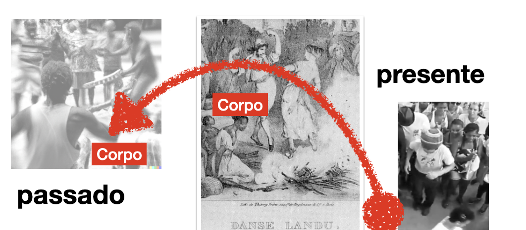 Mas a cultura não é só texto, e o conjunto da herança de tradições orais, musicais, coreográficas permaneceu, carregada de corpo em corpo pelas tradições incorporadas. Como refazer essa jornada sem usar a lente, o texto e o corpo do colonizador?